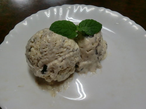 4.量後加入打發鮮奶油和餅乾拌勻放入鐵盤冰入冷凍庫