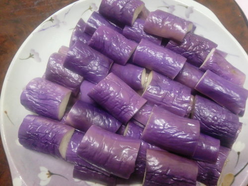 茄子洗淨切小段再對半切開
